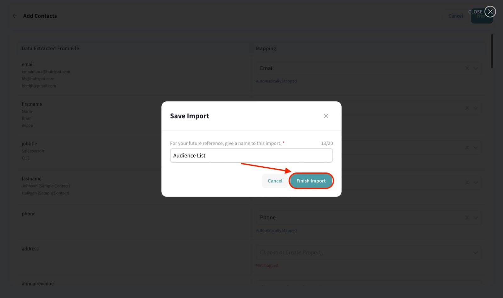 Note: Ensure you have email in one of your fields as it is mandatory to be mapped in HubSpot.
