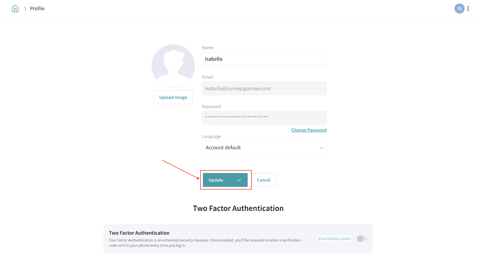 1. To update, click on the profile icon and select “Profile Settings”. You will be redirected to the User Profile page. Here you can change all the above-mentioned details.