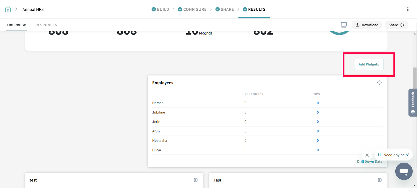 2. Widgets help you dissect your data better and gain deeper insights for your business. Select any of the widgets by clicking on the Add Widgets button.