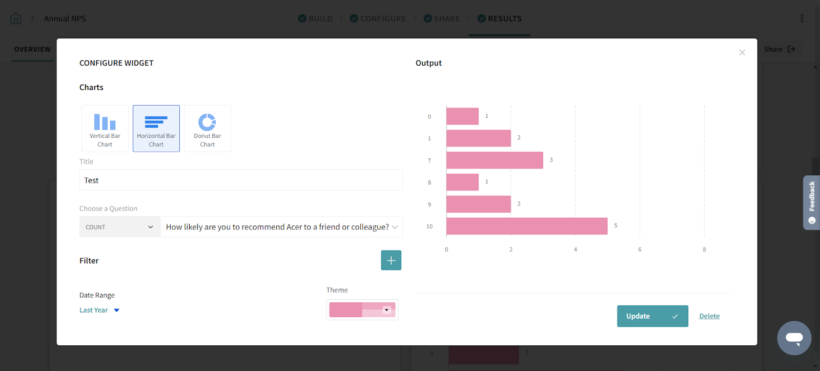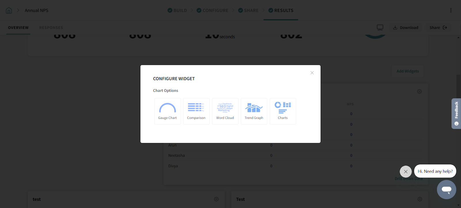 The Gauge Chart widget lets you segment your responses using filter groups and see the breakdown of promoters, passives, and detractors. You can add multiple segments to identify & track their performance.