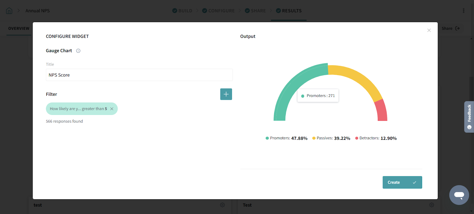 Provide a title to your Gauge Chart and add filters as per your intent. Click Create once you’ve set the conditions.