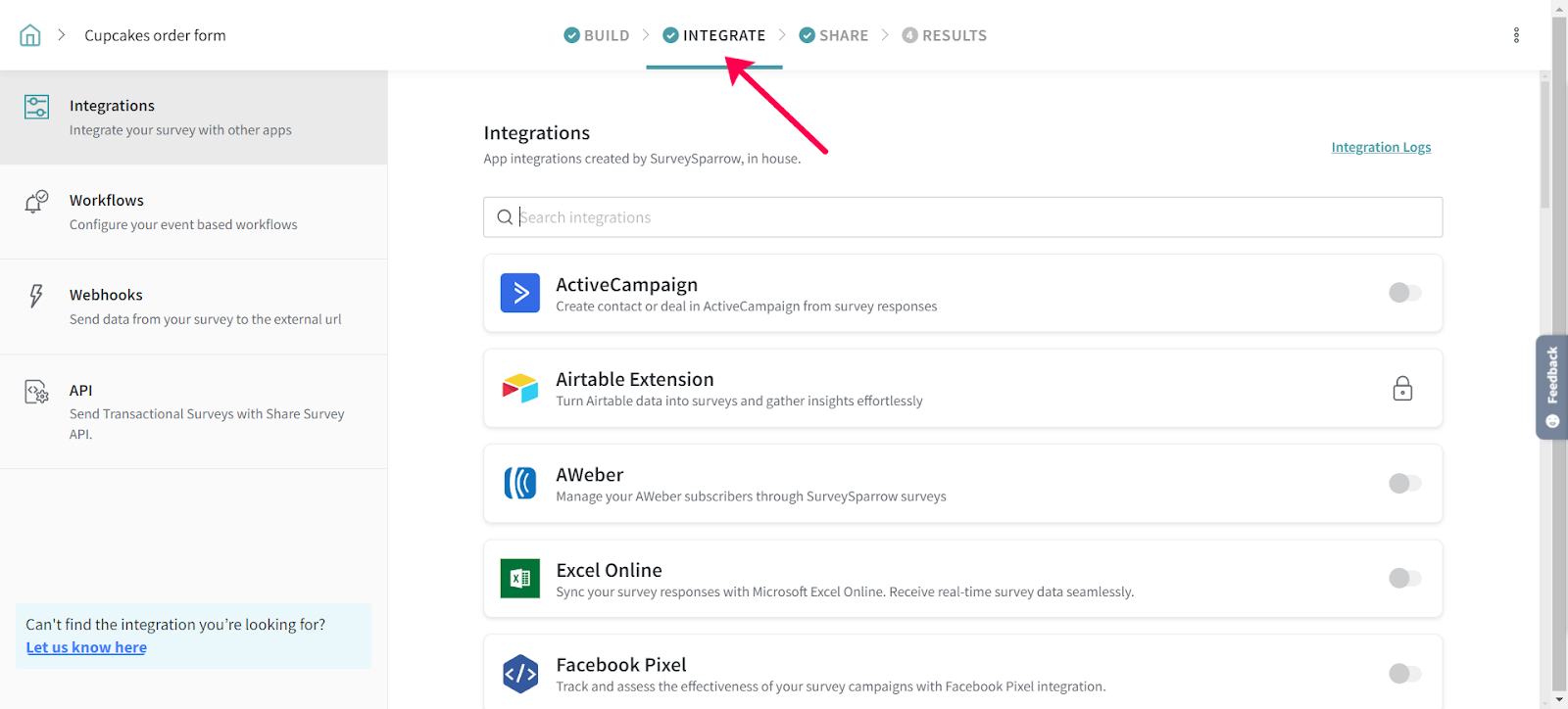 1. On your survey page, click on the Integrate icon.