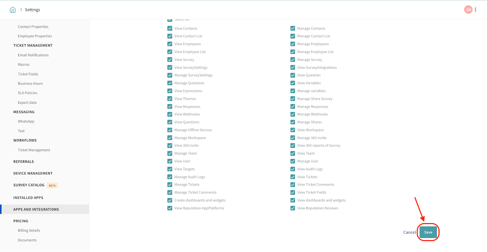 6. Now, go to your help desk system and set up a webhook to call SurveySparrow API endpoint https://api.surveysparrow.com/v3/channels.