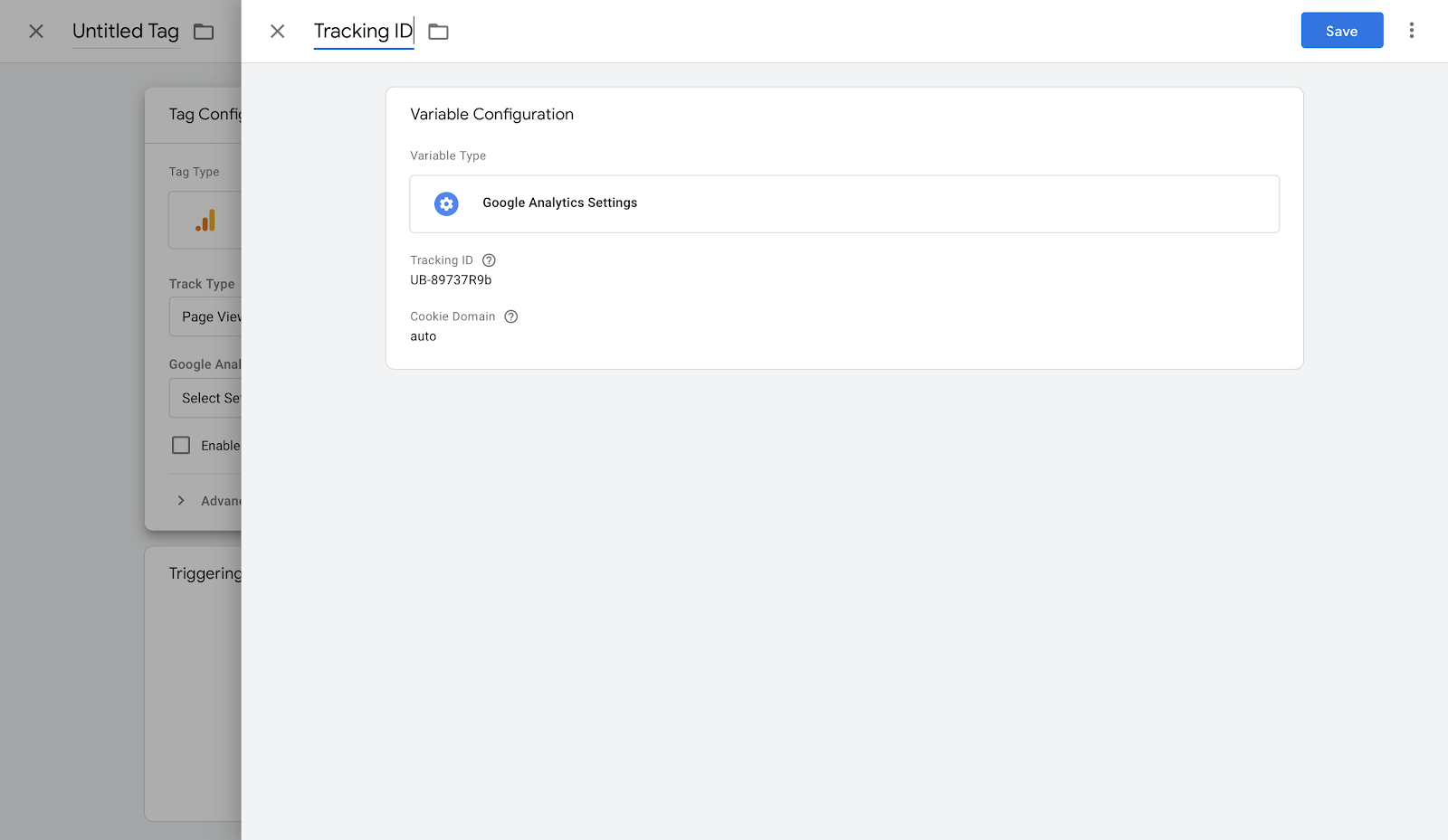 2. In the Tag configuration window, choose Google Analytics: Universal Analytics as the tag type, and Page View as the Track type.
