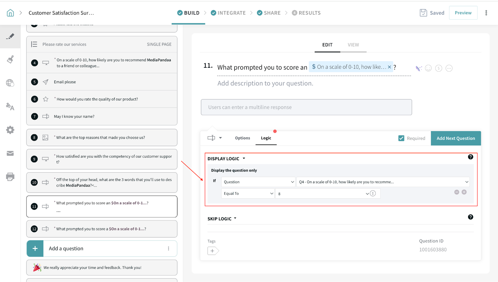Here’re the steps to enable Display Logic in your survey: