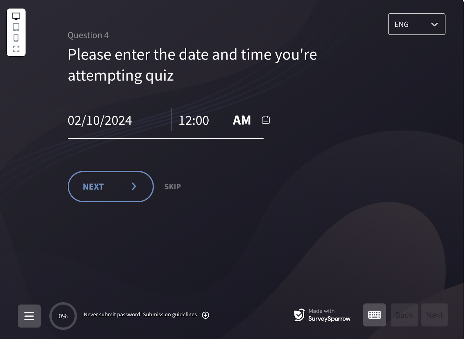 You run a school and want to conduct a general knowledge quiz frequently. Date question type in your quiz would help you compare the results based on different dates and times. You can closely monitor the progress your students are making.