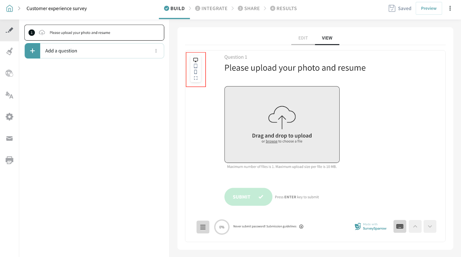 4. The question is all set! You can now go to the View page and preview in different device formats.