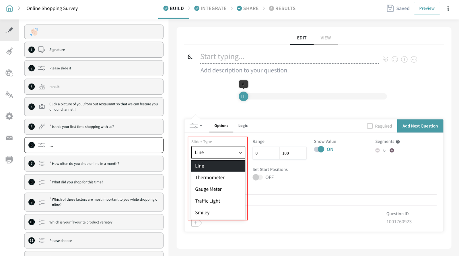 - Slider Question type guarantees better survey completion rates.