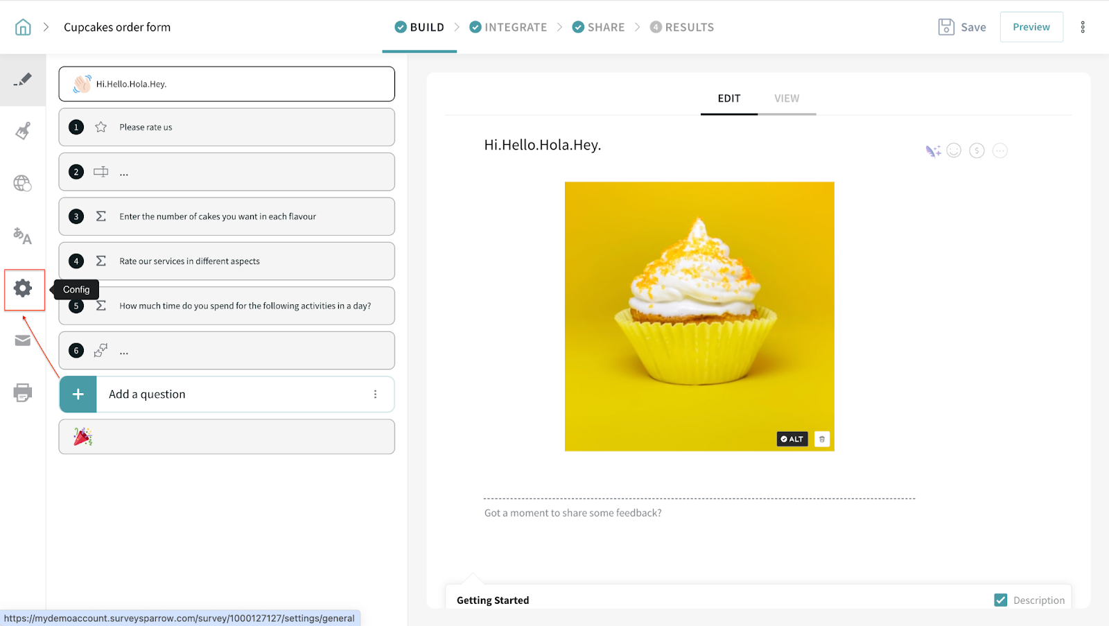 1. Log into your SurveySparrow account. Select the survey you would like to set a limit to.