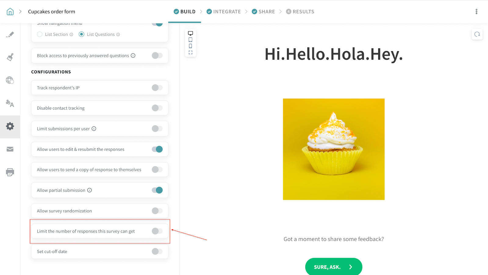 Control how many responses your survey gets by setting a limit on the number of participants.