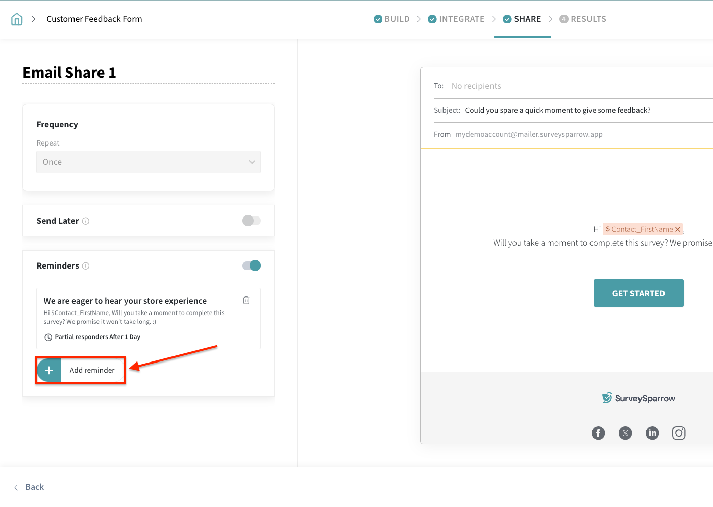 4. You can choose to add more reminder emails by clicking Add reminder.
