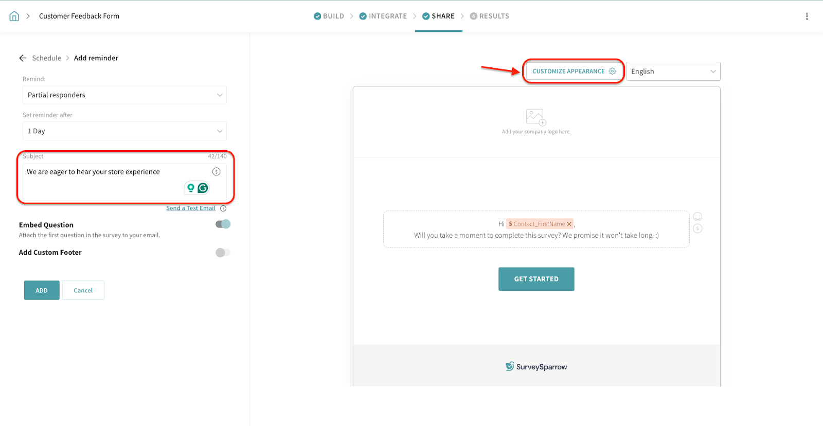 When you send out your survey, it so happens that your participants may either forget to take it or leave it halfway. Reminding them to complete the survey will greatly boost survey completion rates.
