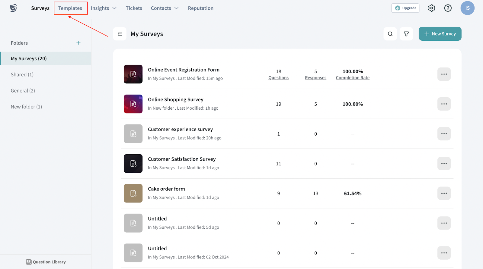 You can also use templates to edit your survey. To do this, go to your home page and choose Templates.