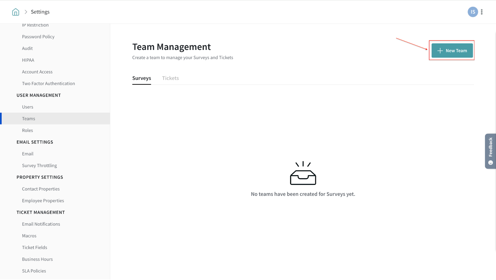 3. Click on the New Team button on the Team Management page.