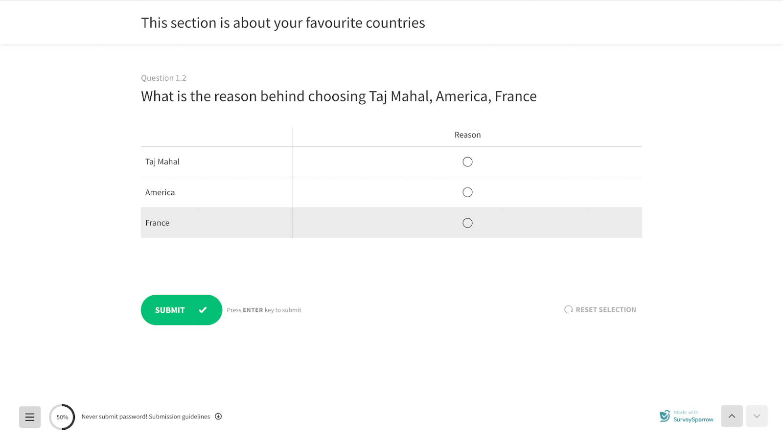 Pipe your survey responses and understand more about your respondents' choices to your survey question.