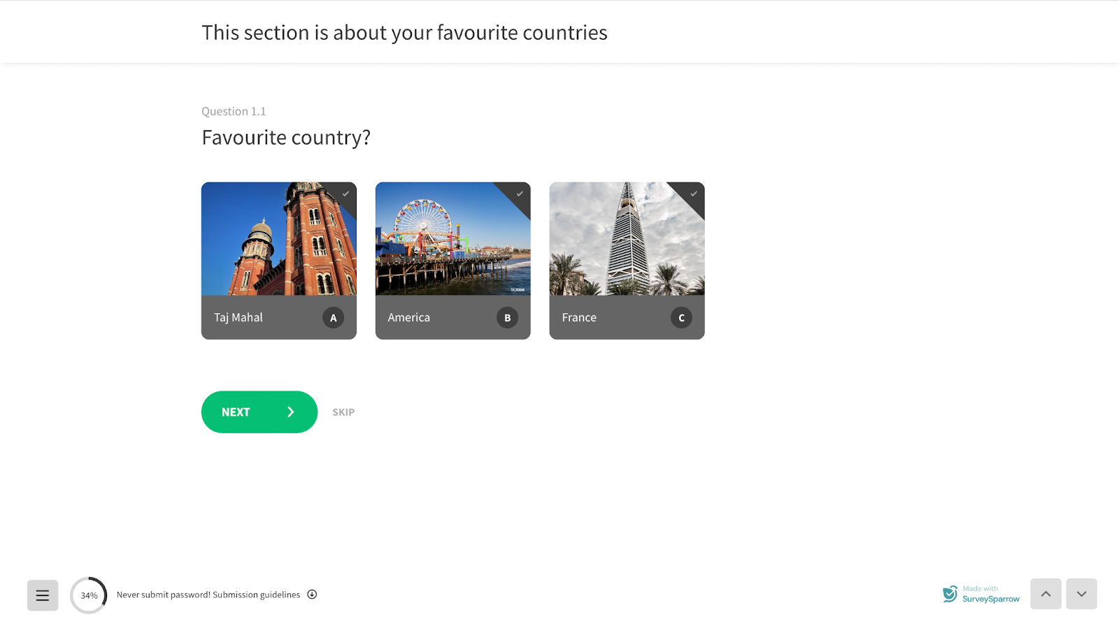 - You can create as many sections as you want and pipe your responses between different sections. You can also pipe your responses between multiple questions too without creating a section.