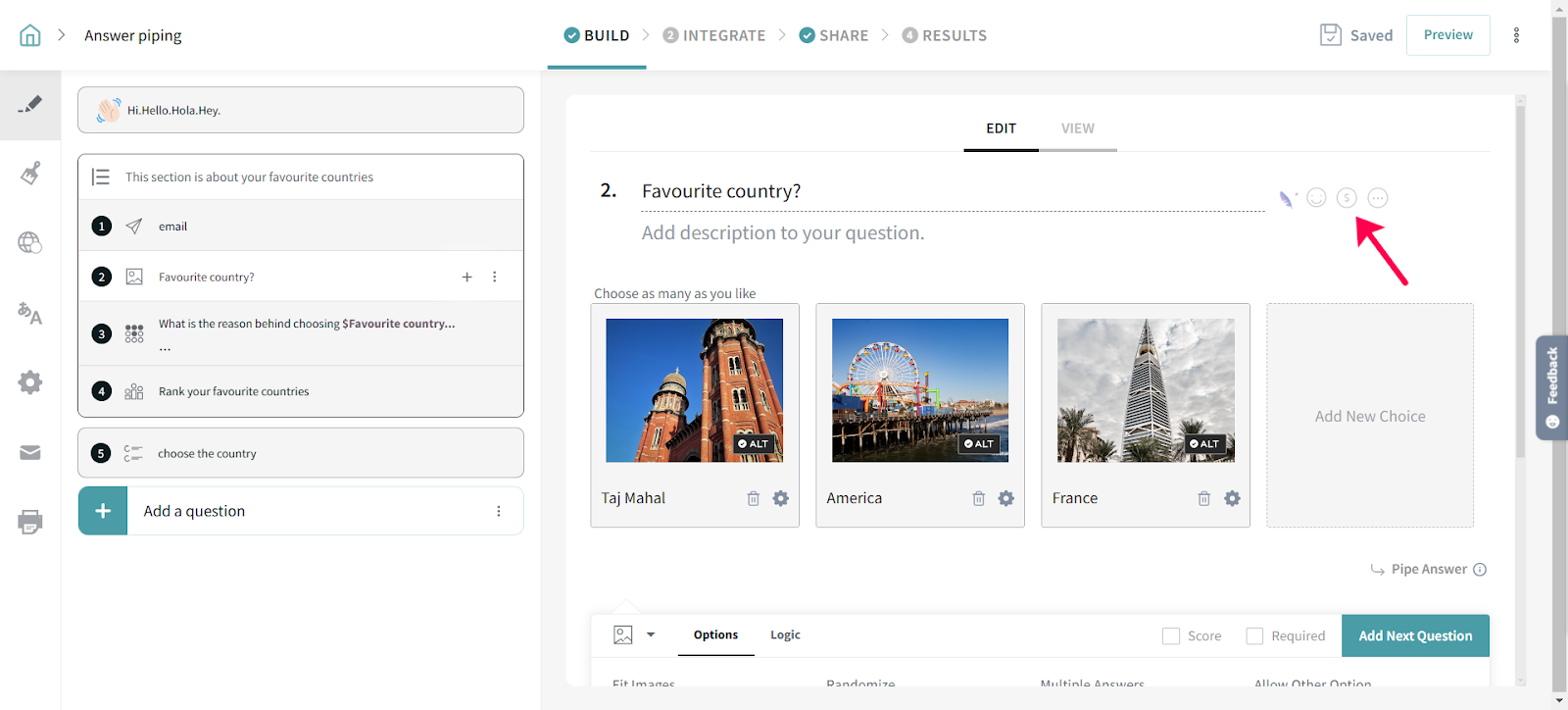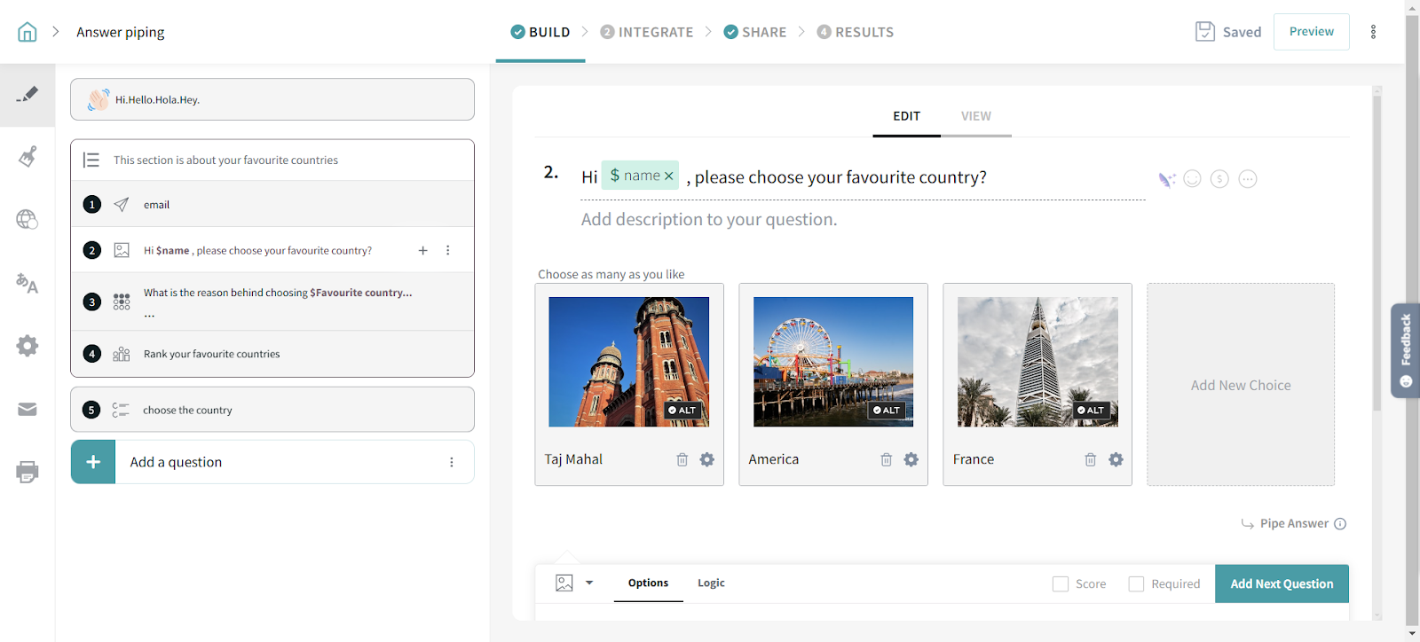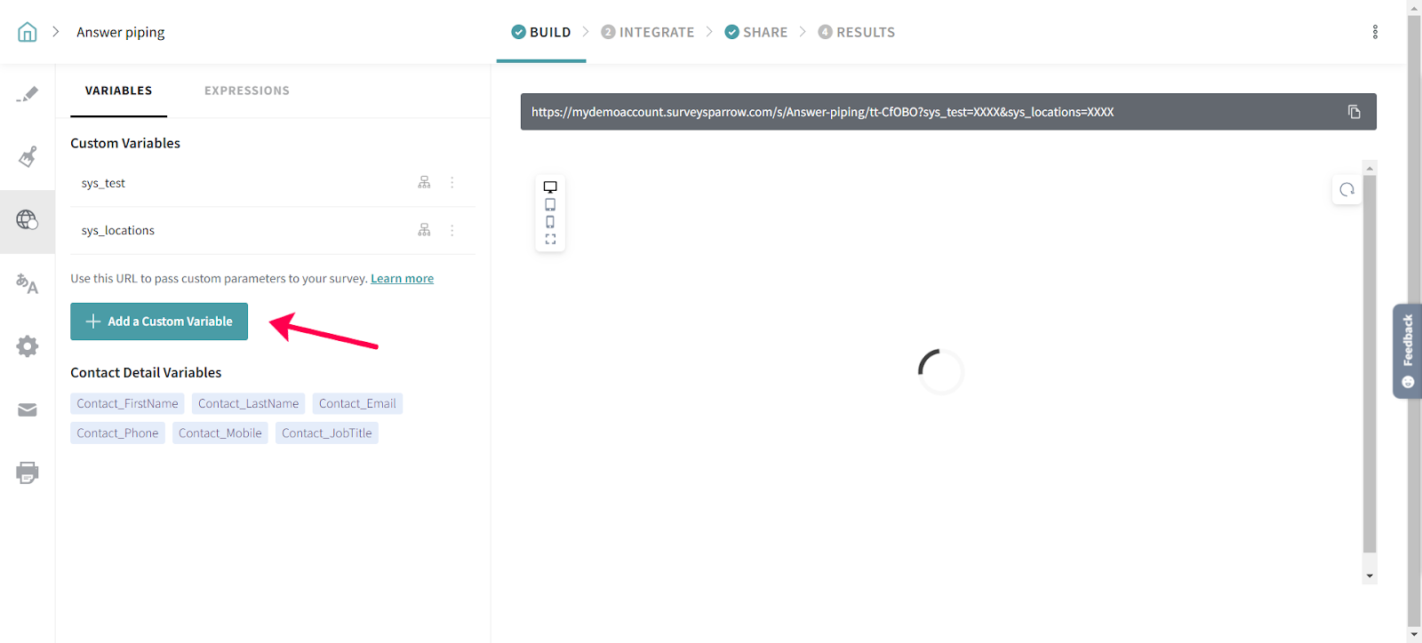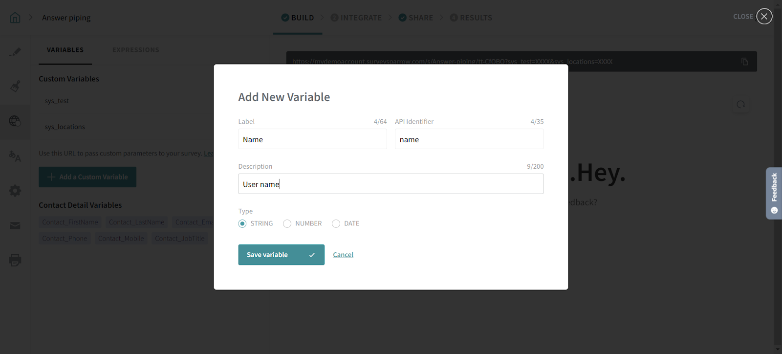 In this example, let’s say we have added the name and email address as the variables in the survey.